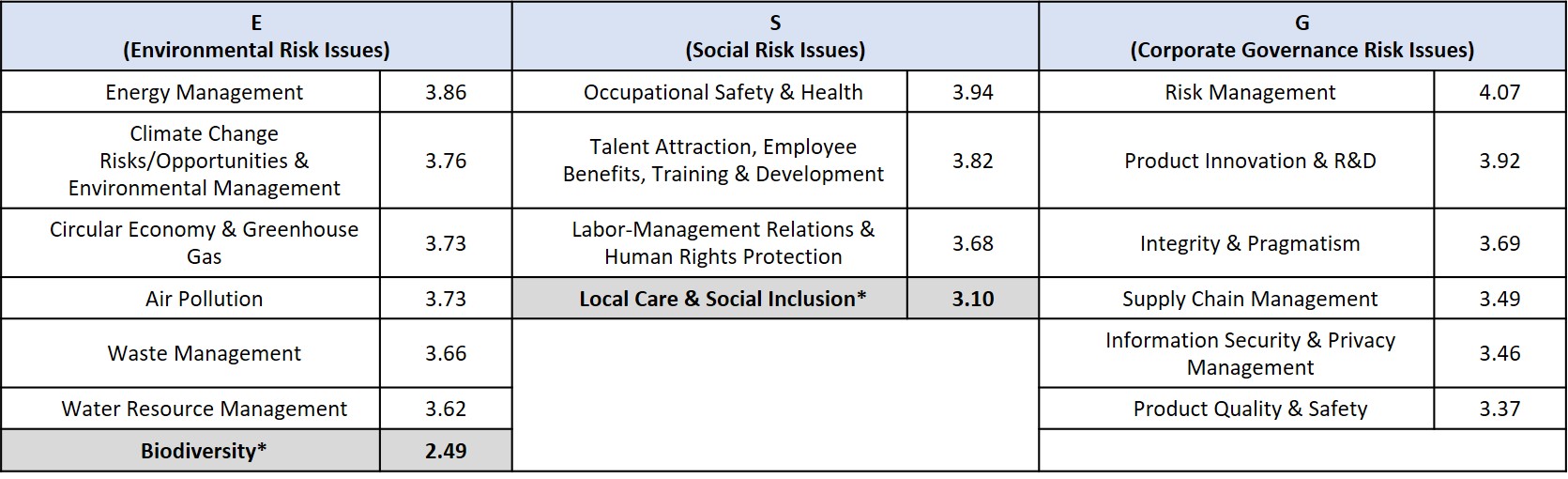 *Biodiversity and Local Care and Social Inclusion were assessed as low-significance issues in 2023 and, therefore, were not included within the scope of material sustainability and risk issues in 2024 and 2025. Nonetheless, Catcher continues to disclose relevant information on these topics to ensure transparency and demonstrate its ongoing commitment to environmental protection and community engagement.